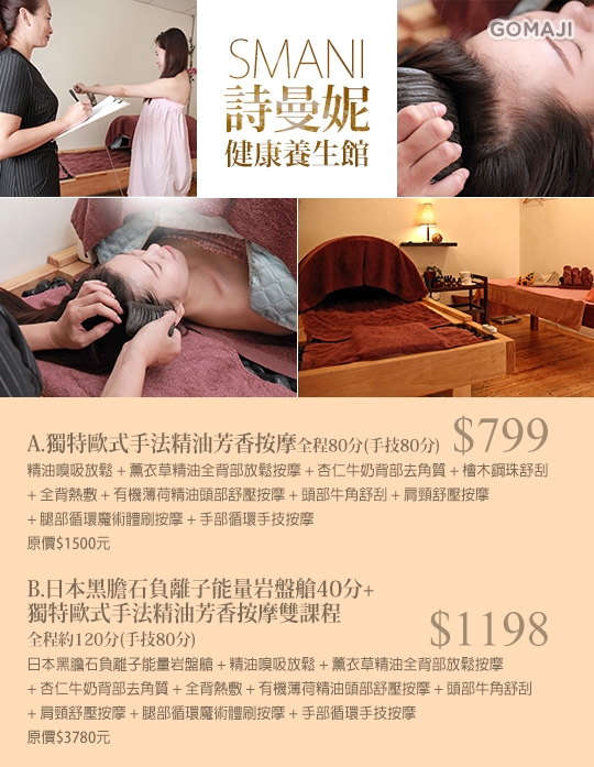 詩曼妮健康養生館 - 127961是最近關注的一項還算不錯的商品,一樣是在Gomaji上發現的。我真的非常喜歡逛Gomaji,尤其很多東西價格都很不錯,也有不少優惠券可以用,下面是賣場提供的商品簡介: